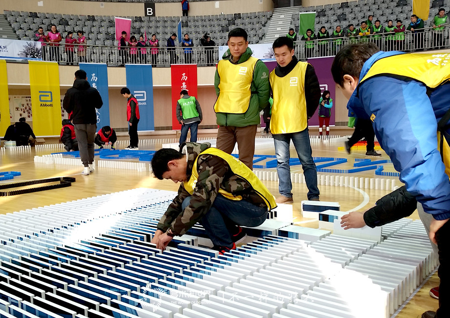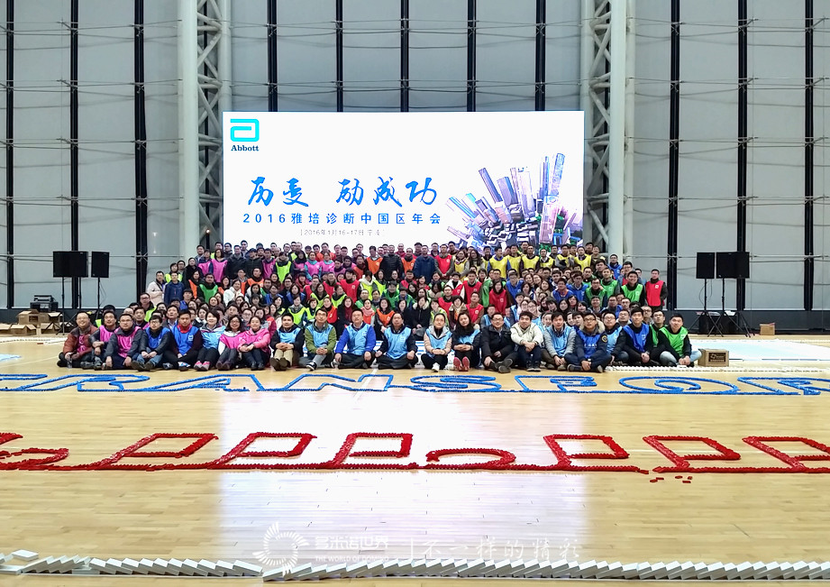 “歷變、勵成功”是雅培2016年年會主題,主辦方特別從北京邀請多米諾世界團隊,為大家組織了一場特別、生動、發人深省的多米諾團隊大挑戰活動,希望通過共同擺放骨牌、完成目標的過程,增加團隊凝聚力,體會“歷變、勵成功”的深意。
