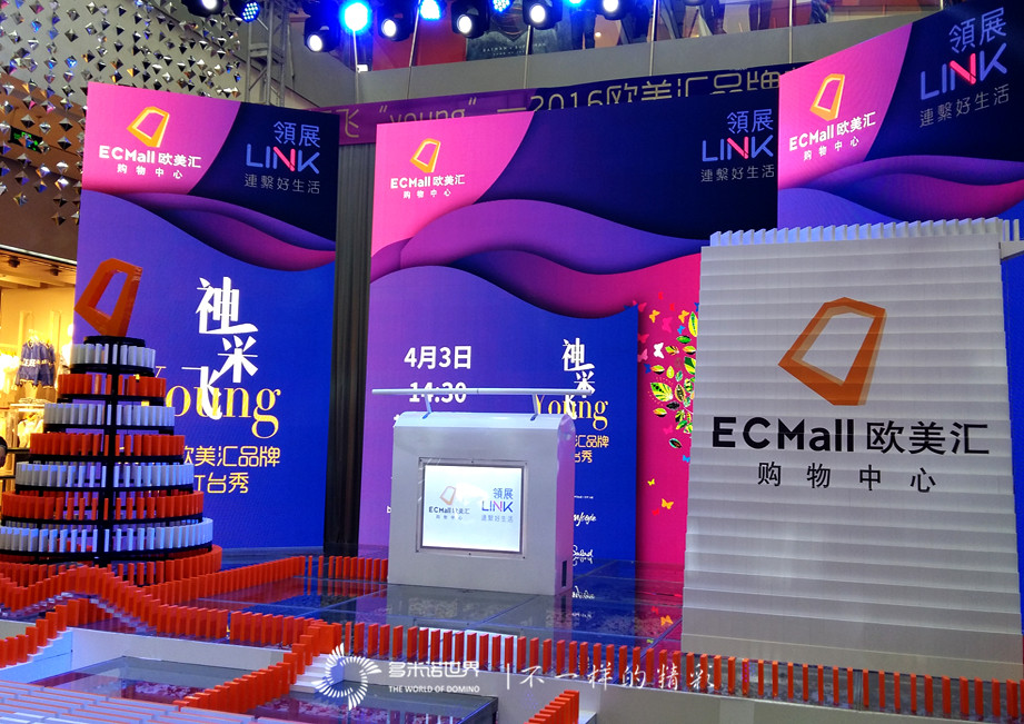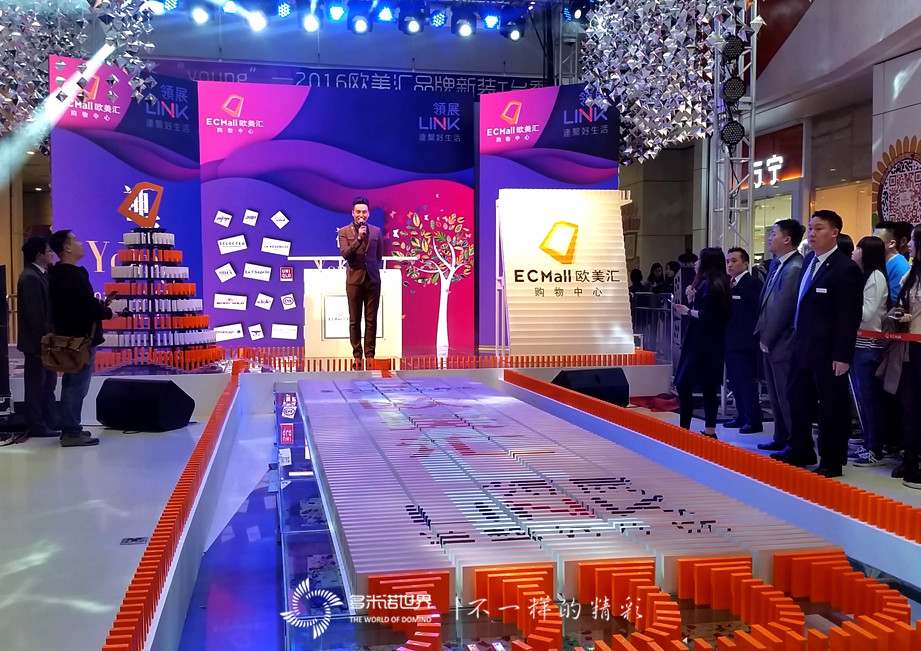 2016年4月3日,作為帝都潮流品牌聚集地之一的歐美匯購物中心,“神采飛YOUNG”2016歐美匯新裝走秀發(fā)布盛大舉行,并邀請(qǐng)多米諾世界紀(jì)錄團(tuán)隊(duì)-多米諾世界,帶來了一場前所未有、精彩炫酷的多米諾啟動(dòng)儀式。
