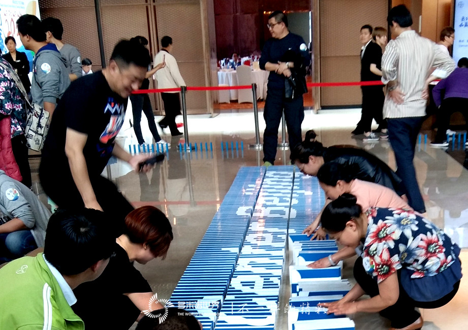 8個團隊進入場地后,在組長的帶動下,迅速、有序地開始各自的骨牌碼放任務,時間短、任務重,令大家在骨牌碼放時更加小心翼翼。加倍的謹慎雖然減少了失誤的次數,但“意外”還是會時有發生,只是困難并沒有影響活動進度,而是令拜耳團隊更加團結、隊員合作更加默契。最終,所有隊員在組長的帶領下,在多米諾教練的指導下,完成了所有骨牌碼放任務,栩栩如生的“拜耳工廠”、氣勢恢宏的“拜耳LOGO”等多幅圖案組成的拜耳多米諾畫卷,展現在所有人面前。