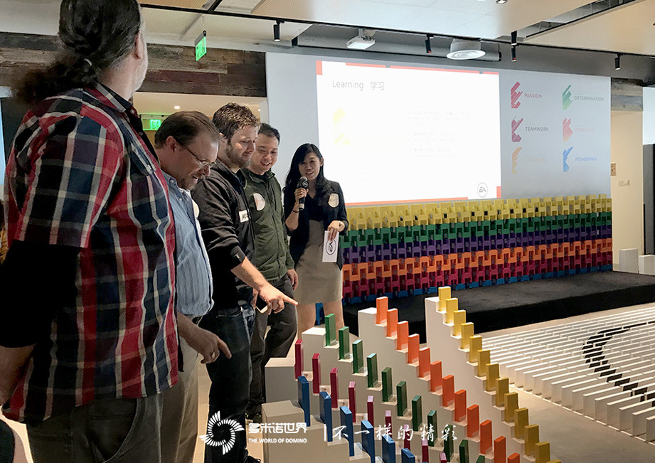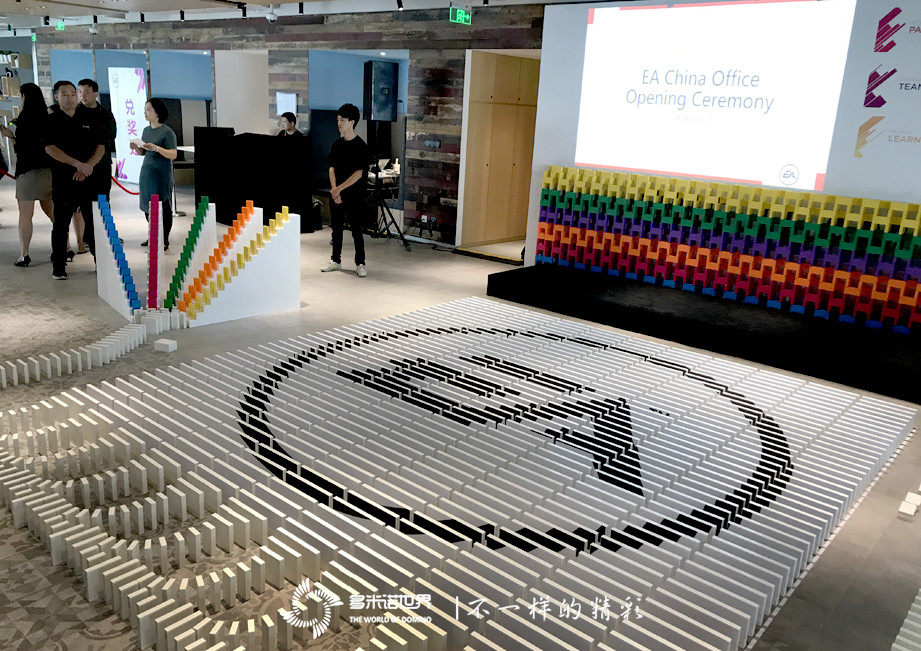 2017年10月26日, EA中國(guó)辦公室揭牌儀式在上海成功舉行,多米諾世界團(tuán)隊(duì)設(shè)計(jì)實(shí)施的多米諾啟動(dòng)儀式成為儀式亮點(diǎn)。