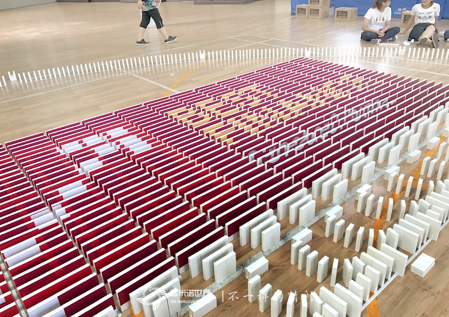在骨牌碼放的過程中,“嘩啦啦……”的意外倒牌聲也開始在現場的各個角落頻頻出現。意外倒牌的增多,讓隊員們收起了剛看到意外發生時的好奇心與不在意,認真地面對每一枚骨牌,在一次次的從頭再來中,磨練了意志,也更加理解了“做到≠做好”的真正含義。