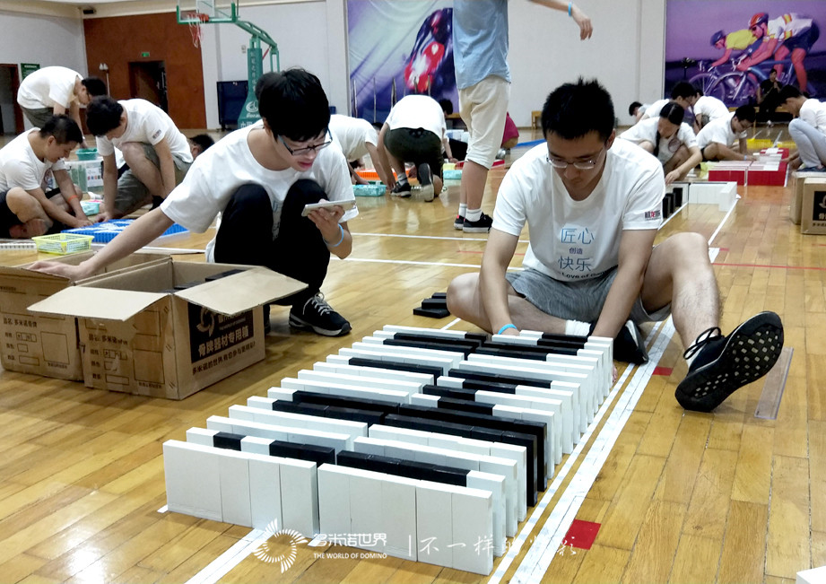 多米諾講師耐心的講解了活動的規(guī)則和碼放技術(shù),隊員們便信心滿滿的進入狀態(tài)。隊員們從開始碼放骨牌時的躍躍欲試,到沉下心來的靜氣凝神,開始變得內(nèi)斂、沉穩(wěn);而面對一次次的意外倒牌,也從一開始的沮喪、無奈,直至不懼失敗、斗志昂揚。