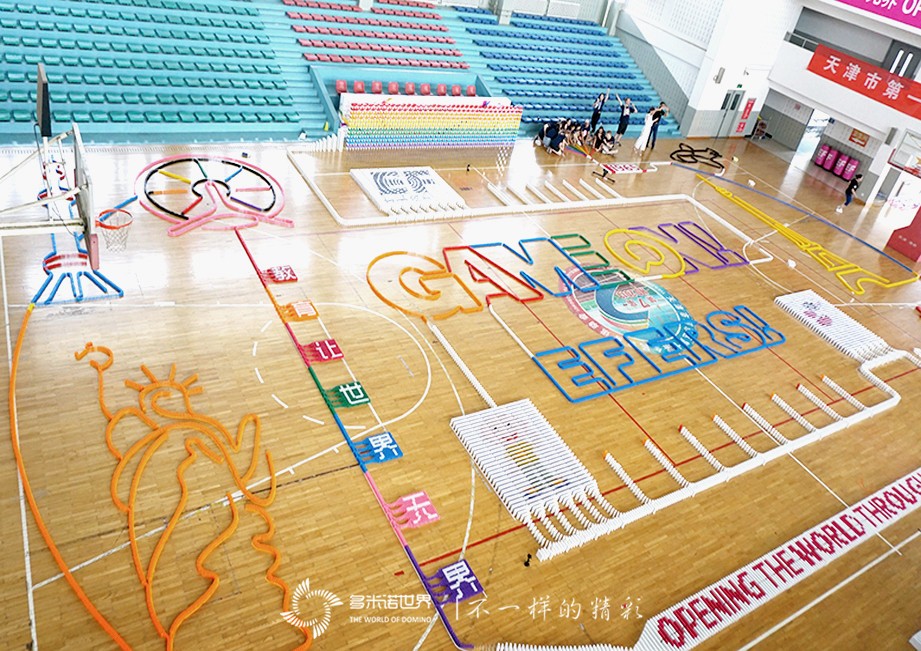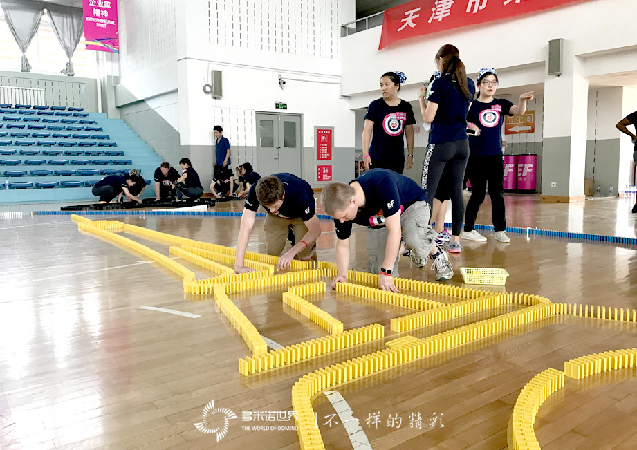 2017年7月5日,天津英孚教育的小伙伴們,集結在102中學體育館,在多米諾世界團隊的引領下,進行了一場比炎炎烈日更加讓人沸騰的多米諾團隊大挑戰。參與此次活動的,是英國,美國,加拿大,澳大利亞,南非,愛爾蘭,新西蘭和中國,8個國家的近300位小伙伴組成的英孚團隊;歷時6.5小時,共同碼放完成近60000枚骨牌,不僅需要團結協作、默契配合,還需要執著、永不放棄的精神。