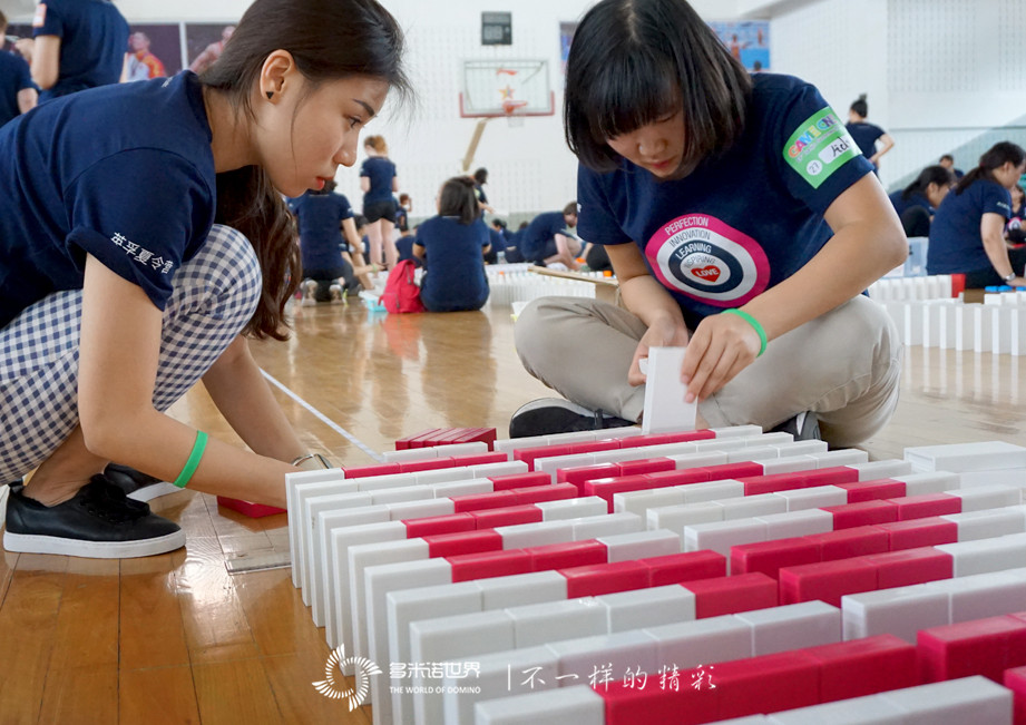 學員們半數以上是英孚的外教老師,雖然大家來自不同的國家,說著不同的語言,但同樣的熱情,同樣的認真細致,面對意外時同樣的包容。在多米諾的世界里,大家樹立了統一的目標,付諸了行動的力量,全身心的體驗巔峰挑戰,在感受心靈的碰撞的過程中,永不放棄、堅持到底,共同為視覺盛宴的到來而努力。