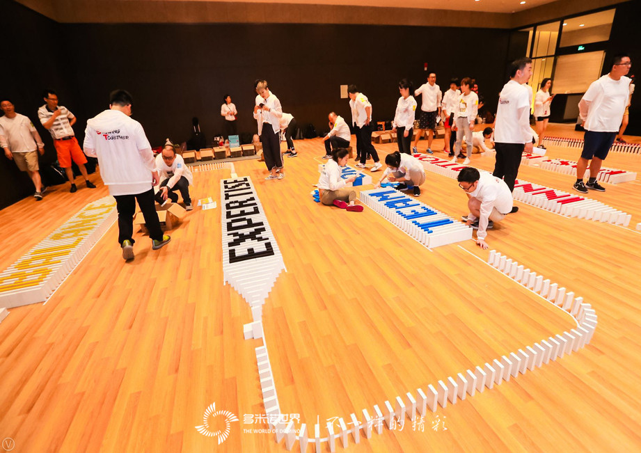 很多人都是初次與多米諾親密接觸,其中還有中文并不精通的國際友人參與,要在120分鐘的時間內共同完成一幅絲芙蘭多米諾畫卷,是一個極大的挑戰,需要大家的積極努力與默契配合。多米諾世界的專業老師,就根據現實狀況做好了充分的準備,雙語任務書、雙語講義、詳細的圖示講解、充足的人力調配,以確保活動的順利完成。