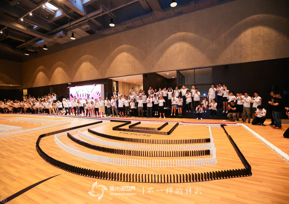 活動現場,朝氣蓬勃的絲芙蘭精英們,認真聆聽多米諾世界老師的技術培訓,有序安排組內任務,大家很快便進入狀態,投身到精彩的多米諾世界中。經過大家的努力,一幅幅多米諾畫面碼放完成。粉色、紫色組成的絲芙蘭之路色彩斑斕,絲芙蘭大廈線條流暢、惟妙惟肖,絲芙蘭行動價值觀文字色彩靚麗,場地中央的活動主題畫面壯觀炫目。