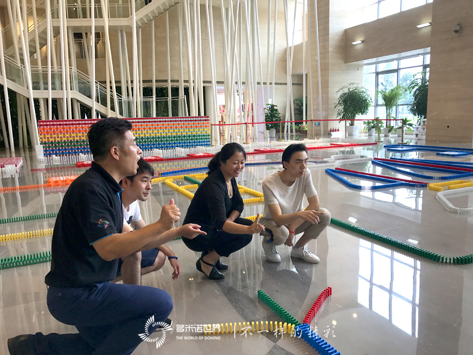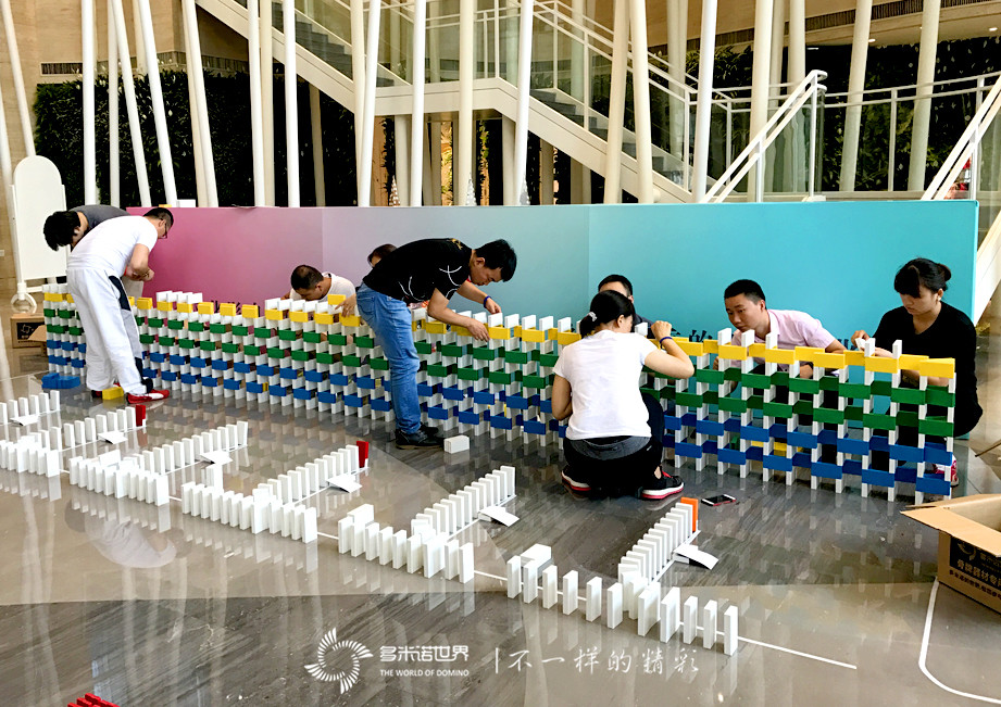 大家多數(shù)是第一次參加多米諾活動,但大家在認真聽完多米諾世界王磊的培訓講解后,都躍躍欲試、志氣高昂,在競技大挑戰(zhàn)的游戲熱身環(huán)節(jié),現(xiàn)場就高潮迭起。進入骨牌創(chuàng)意碼放環(huán)節(jié)后,大家隨即沉下心來,用細心、耐心、用心碼放每一枚骨牌,雖然有失誤、意外發(fā)生,但大家卻沒有一絲懈怠與灰心,在規(guī)定時間內(nèi)完成了所有碼放任務,并將所有多米諾畫面串連到一起。