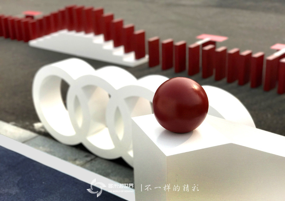 紅色的骨牌高高低低、錯落有致,為啟動活動增添了一份新奇與創意。當啟動嘉賓將紅色的球放入滑道,一枚枚骨牌順序前行,由骨牌組成的立體多米諾畫面,瞬間變換成活動主題畫面,“駕控孤島”駕控體驗之旅文字映入觀禮嘉賓眼中,活動現場達到高潮。