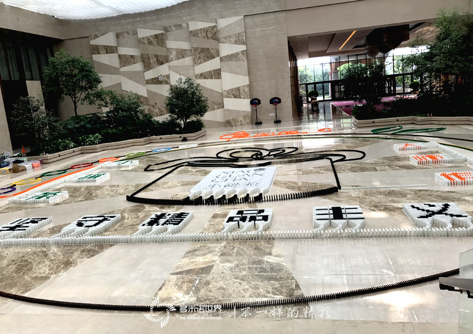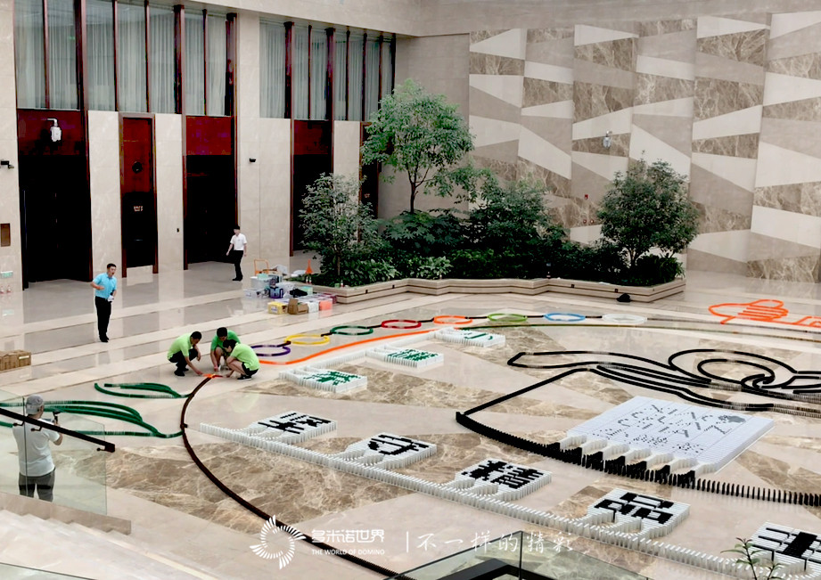活動現場,認真聆聽了多米諾團隊老師的技術培訓的隊員們,在各自的任務區域進行細致的骨牌碼放。身著不同顏色服裝的隊員,在活動現場就像流動的彩虹一樣移動穿梭,很快,一幅幅骨牌圖案便豎立在場地中。