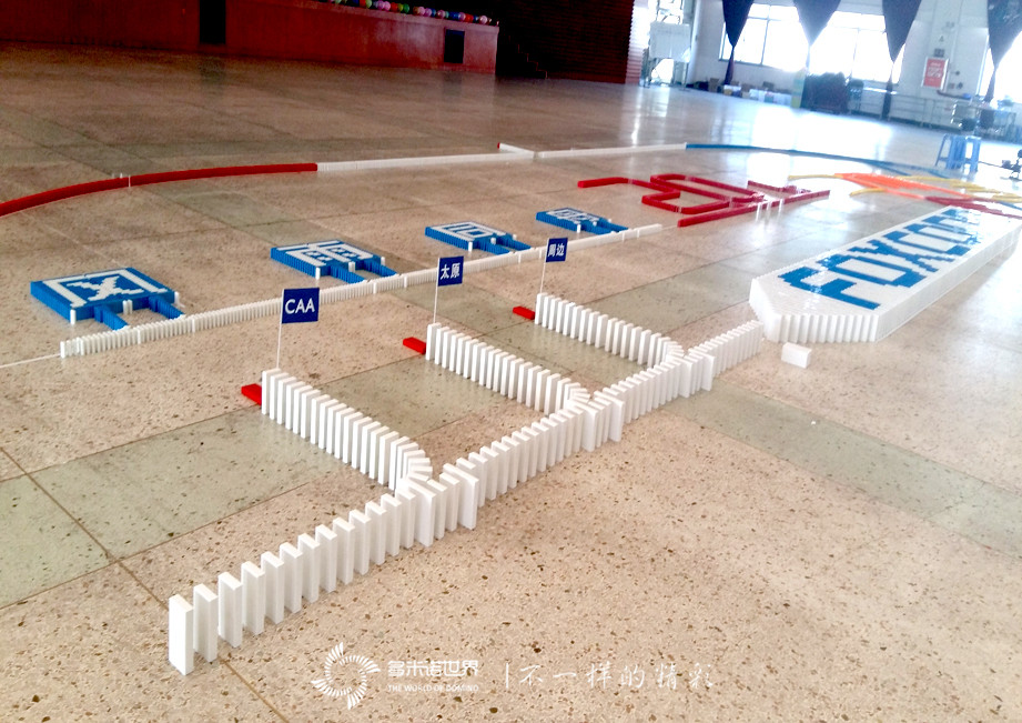 2016年11月27日,富士康CAA事業群太原周邊事業處,拍攝了一部“因你而精彩”為主題的視頻,多米諾骨牌再次成為視頻主角,多米諾世界團隊設計的骨牌畫面,展現了攜手同行、“風雨同舟”的“20載”,用“一口飯”、“一家人”、“一輩子”的樸實語言,講述了同行二十載的深情厚意。