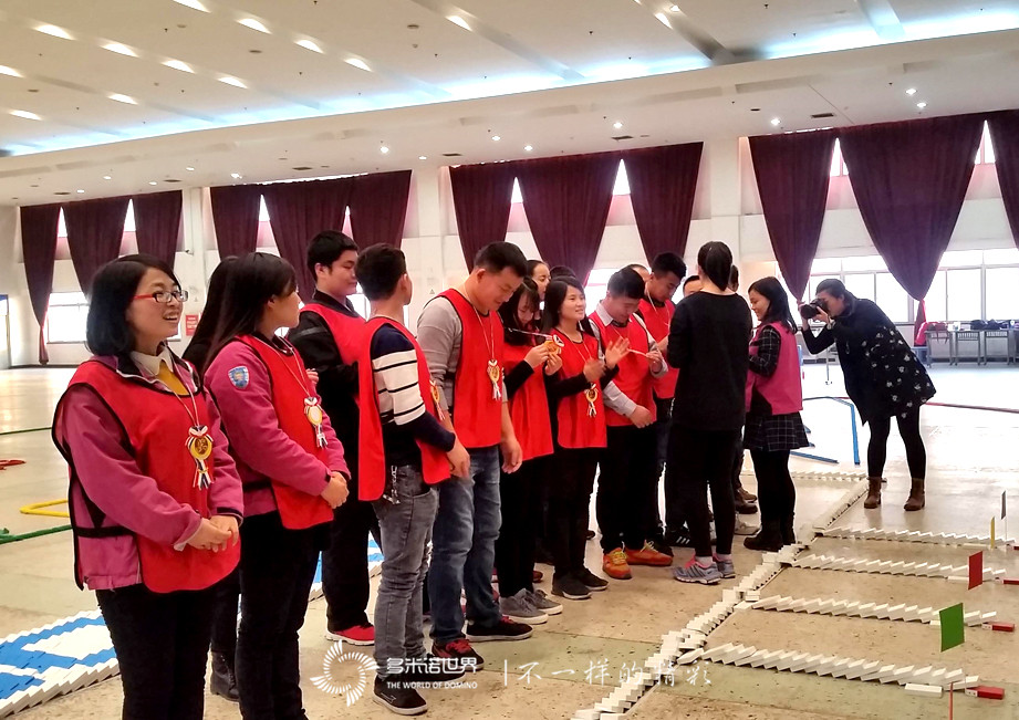 課程在緊張的節奏中有序進行著,學員們也在多米諾世界老師的指導下認真地碼放著每一枚骨牌,通過所有學員的共同努力,最終蘊含著夢想和祝福的多米諾圖案順利完成。當學員們看著一枚枚骨牌順利的前行,透過一幅幅多米諾畫面,似乎看到了自己美好的未來。