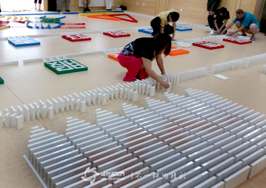 團隊任務,骨牌的碼放數量大,碼放方法多樣,又需要將所有骨牌串連到一起,還是有一定難度的。挑戰游戲中的倒牌經歷此時變成了經驗,讓大家更加勇于面對失誤,而大家默契的分工協作,也令碼放速度迅速提升。