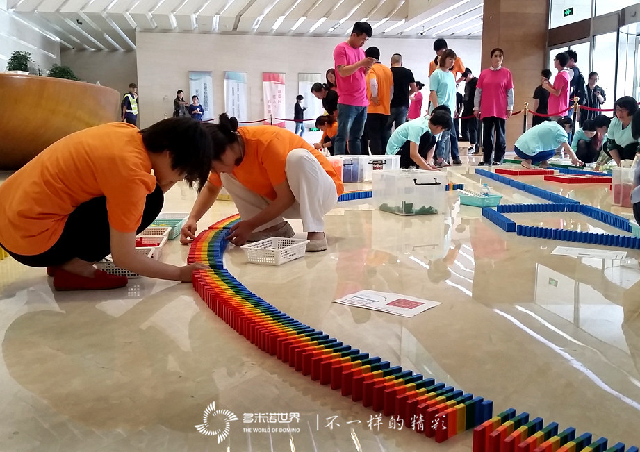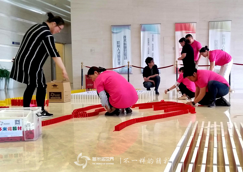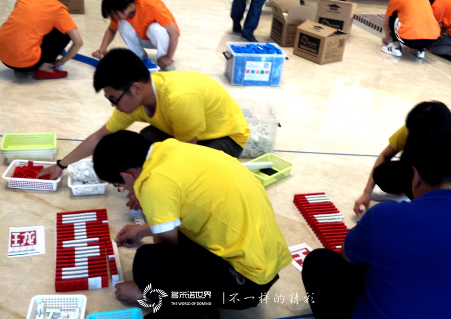 來自兩個機構(gòu)的45名青年員工,組成了4支隊伍,經(jīng)過王磊老師的專業(yè)培訓(xùn),有序進(jìn)入場地,在多米諾世界教練團(tuán)隊的指導(dǎo)下,共同完成骨牌碼放任務(wù)。