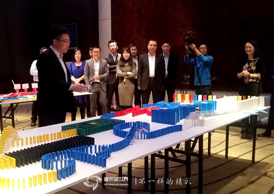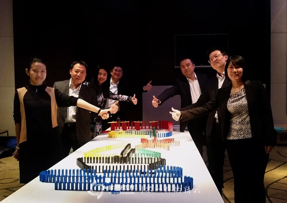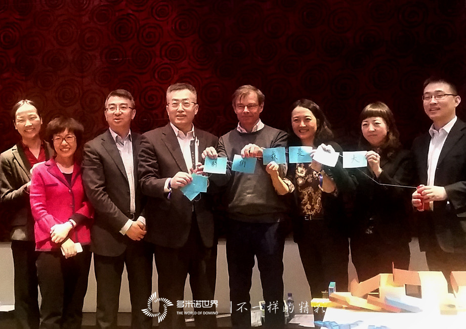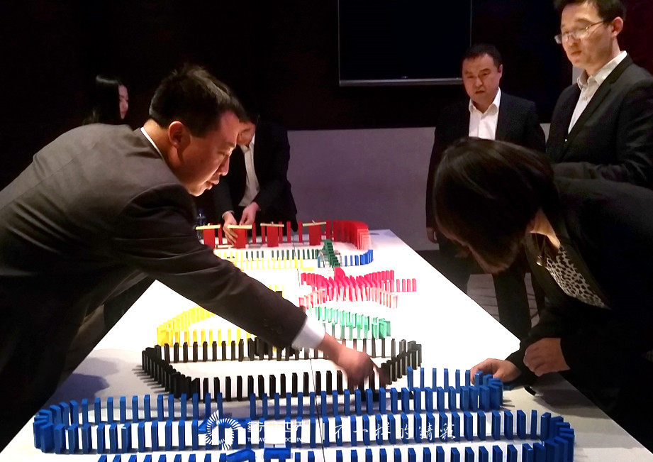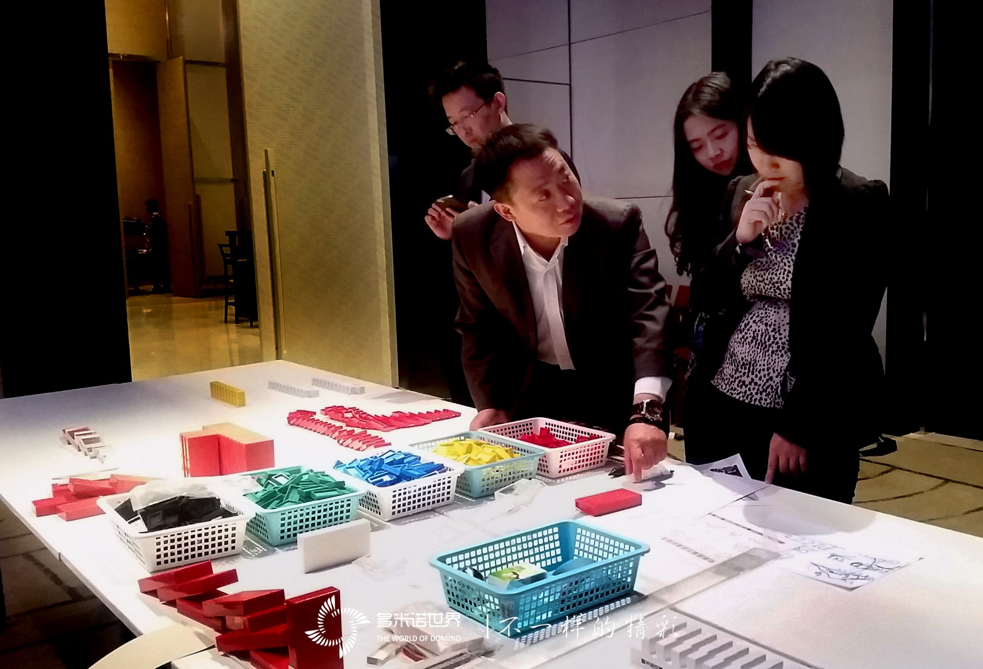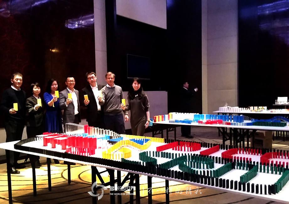 儀式過后,大家聚在一起進行了一場別開生面,激烈有趣的多米諾創意大比拼。在短短90分鐘里,大家分為4個小組,用多米諾骨牌和精巧的機關裝置,勾畫著雙方合作的美好愿景,一幅幅富有創意和寓意的畫面在隊員們精心的設計和碼放中一一呈現。