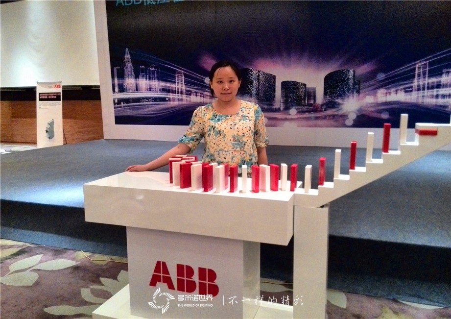 會議中特別邀請“多米諾世界”專業團隊為會議設計多米諾骨牌啟動形式,推出2014年的新產品形象,用多米諾這項專注細節的形式來推出新品,恰恰寓意ABB百年品質,源于細節的理念,為大家帶來安全高效的產品。 在全場共同倒計時聲中,來自ABB產品事業部的負責人為新品啟動第一枚骨牌,紅白雙色骨牌共同沿著整齊的軌道行進,一氣呵成地成功將新品展現在大家面前,現場掌聲歡呼,大家共同期待美好的未來像多米諾骨牌一樣順暢。