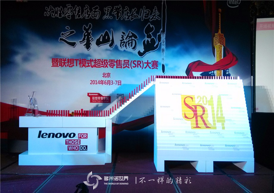 2014年6月4日,聯(lián)想T模式超級零售員(SR)大賽進入決賽階段,在決賽開始前,由聯(lián)想零售商務(wù)總經(jīng)理王忠上臺賀詞并親手轉(zhuǎn)動啟航風車,用多米諾骨牌立體道具形式展現(xiàn)了他對此次大賽的祝福。